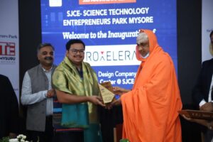 Honored by His Holiness Jagadguru Sri Sri Shivarathri Deshikendra Mahaswamiji and Mr. Sanjeev Kumar Gupta for contributions to innovation and entrepreneurship under the SJCE Science & Technology Entrepreneurs Park (STEP), Mysuru.